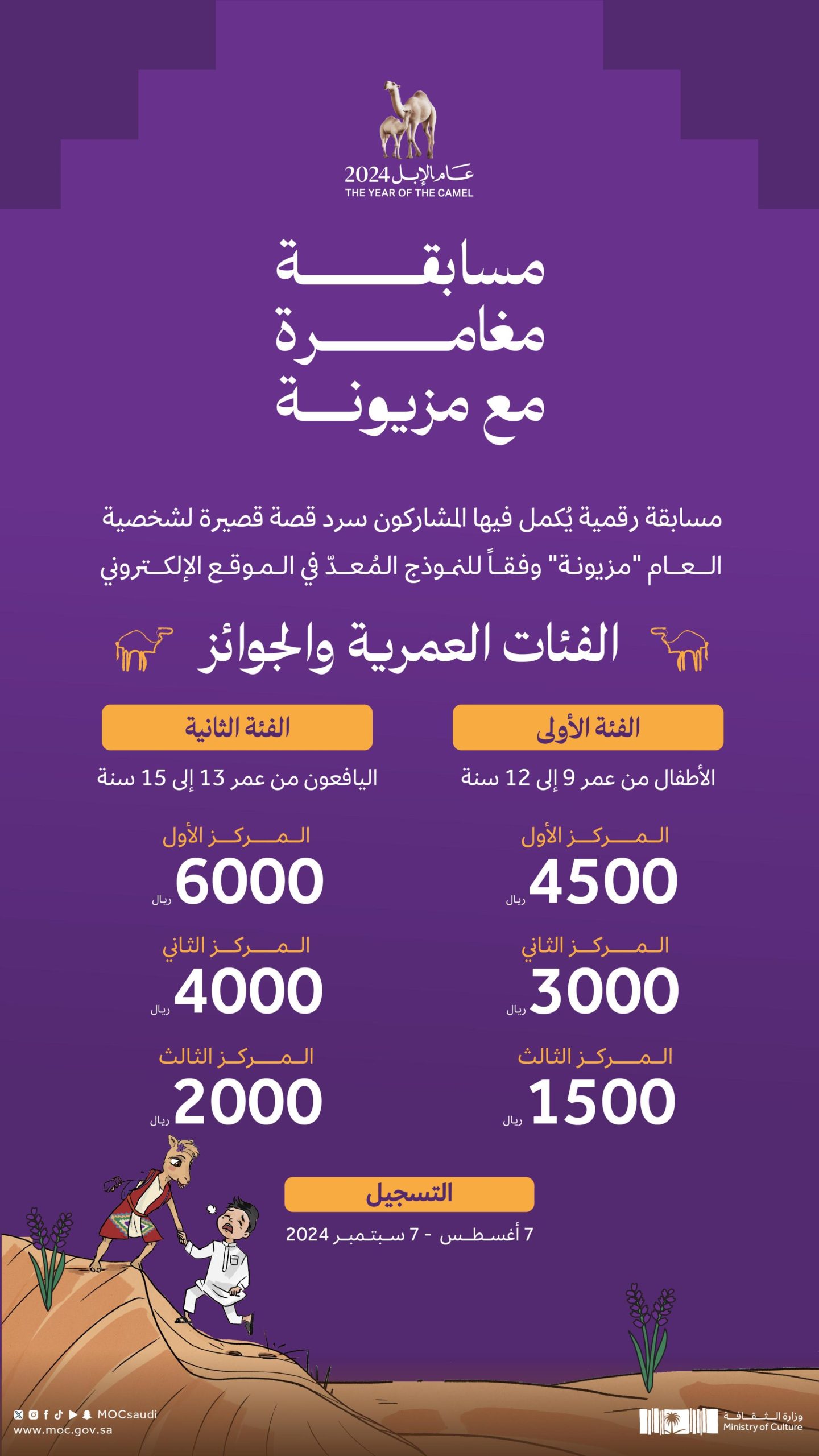 #وزارة_الثقافة تطلق مسابقة “مغامرة مع مزيونة” ضمن أنشطة ومبادرات عام الإبل 2024
