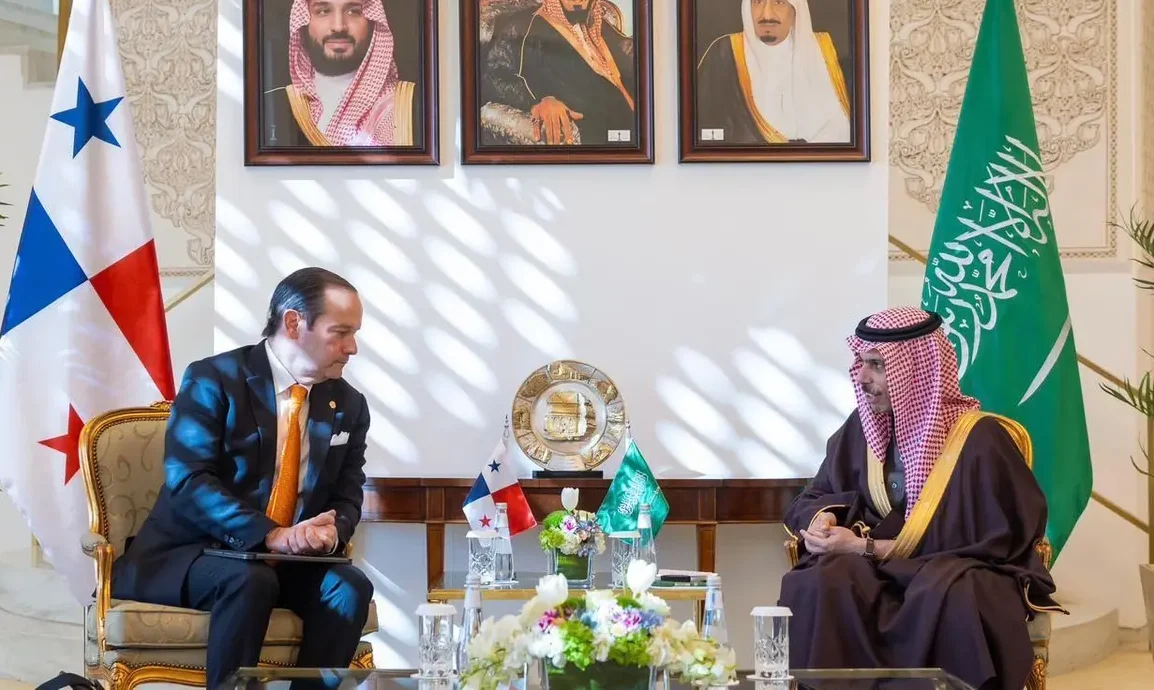 استقبل صاحب السمو الأمير فيصل بن فرحان بن عبد الله وزير الخارجية، في مقر الوزارة بالرياض اليوم، معالي وزير العلاقات الخارجية في جمهورية بنما هافيير مارتينيز أتشا، يرافقه معالي وزير التجارة والصناعة خوليو مولتو.