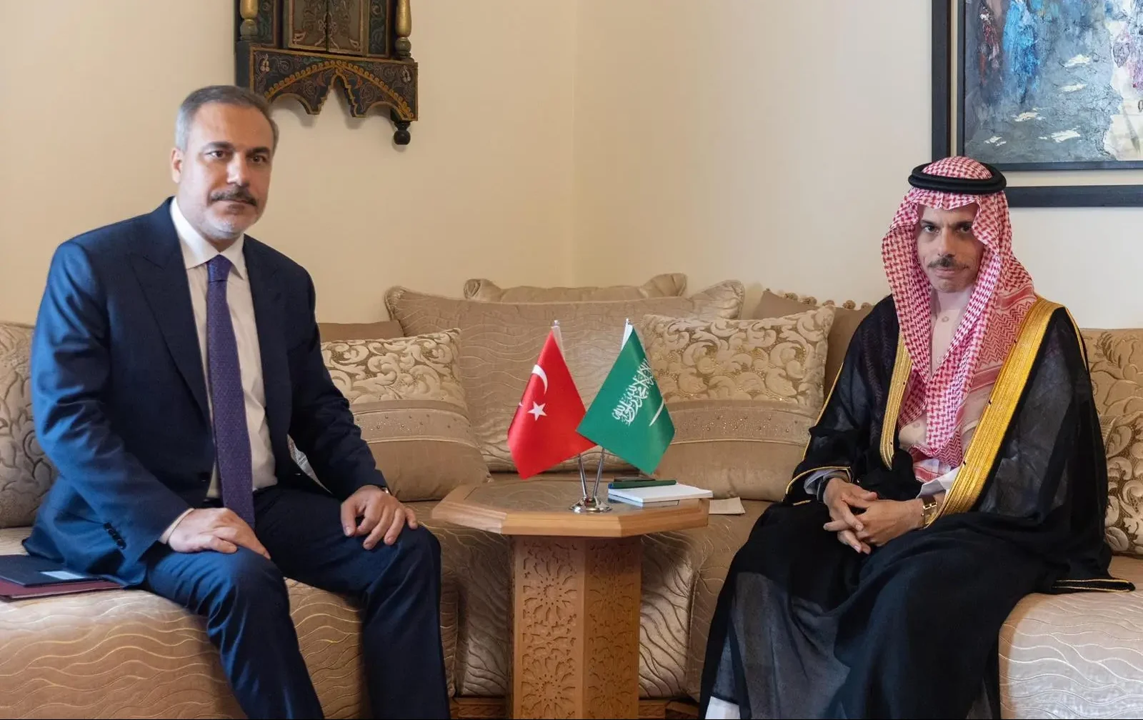 صراحة – واس : التقى صاحب السمو الأمير فيصل بن فرحان بن عبدالله وزير الخارجية، اليوم، بمعالي وزير خارجية الجمهورية التركية هاكان فيدان، وذلك على هامش اجتماع جامعة الدول العربية على المستوى الوزاري بدورته الـ (162) المنعقد بمقر الجامعة في القاهرة.