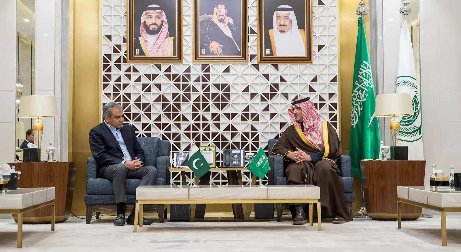 فيما حضرها من الجانب الباكستاني سفير جمهورية باكستان لدى المملكة أحمد فاروق، ومدير عام الجوازات والهجرة مصطفى جمال قاضي، ووكيل وزارة الداخلية رفعت مختار رجب.