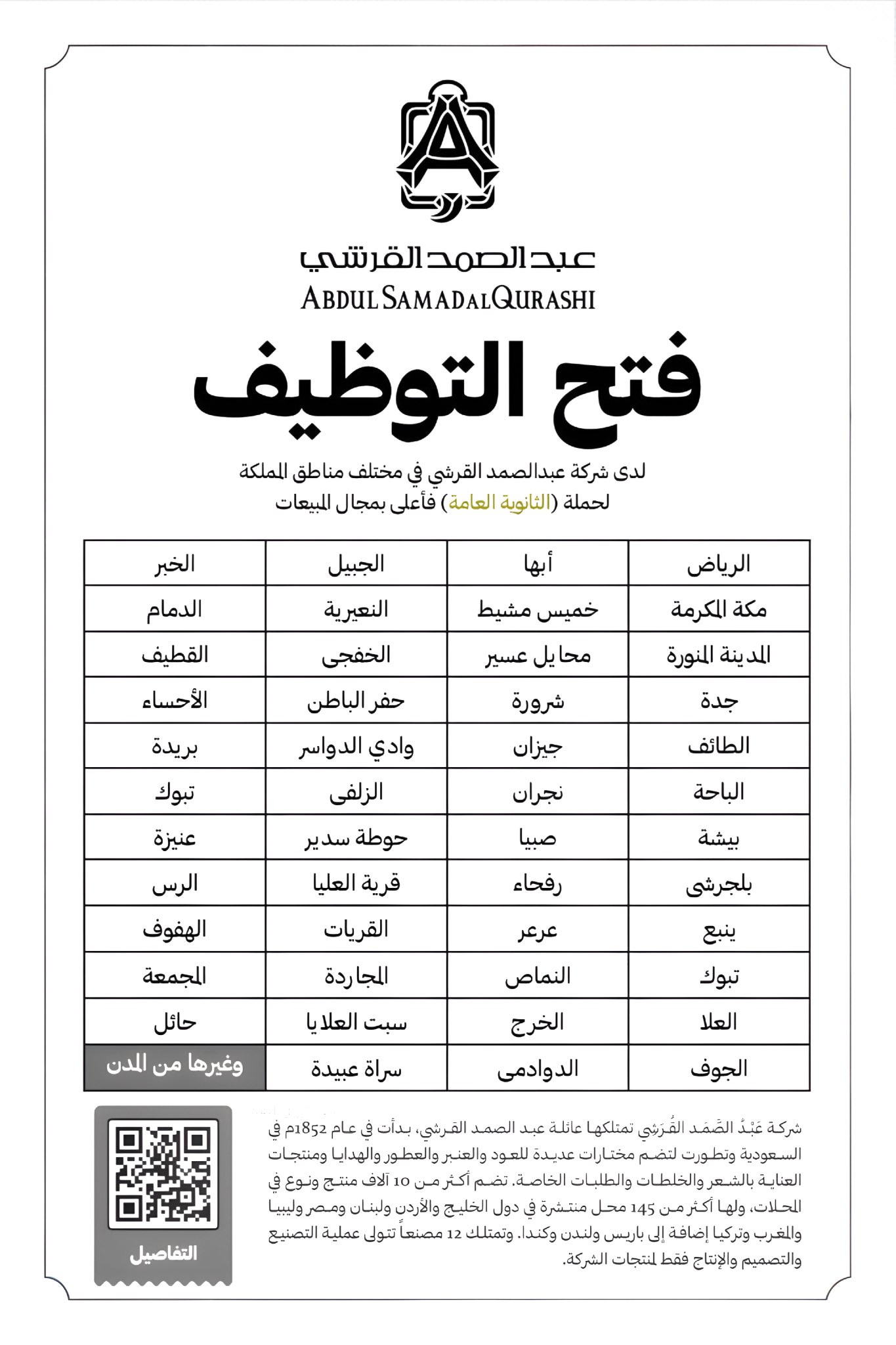 #وظائف_شاغرة في شركة عبدالصمد القرشي