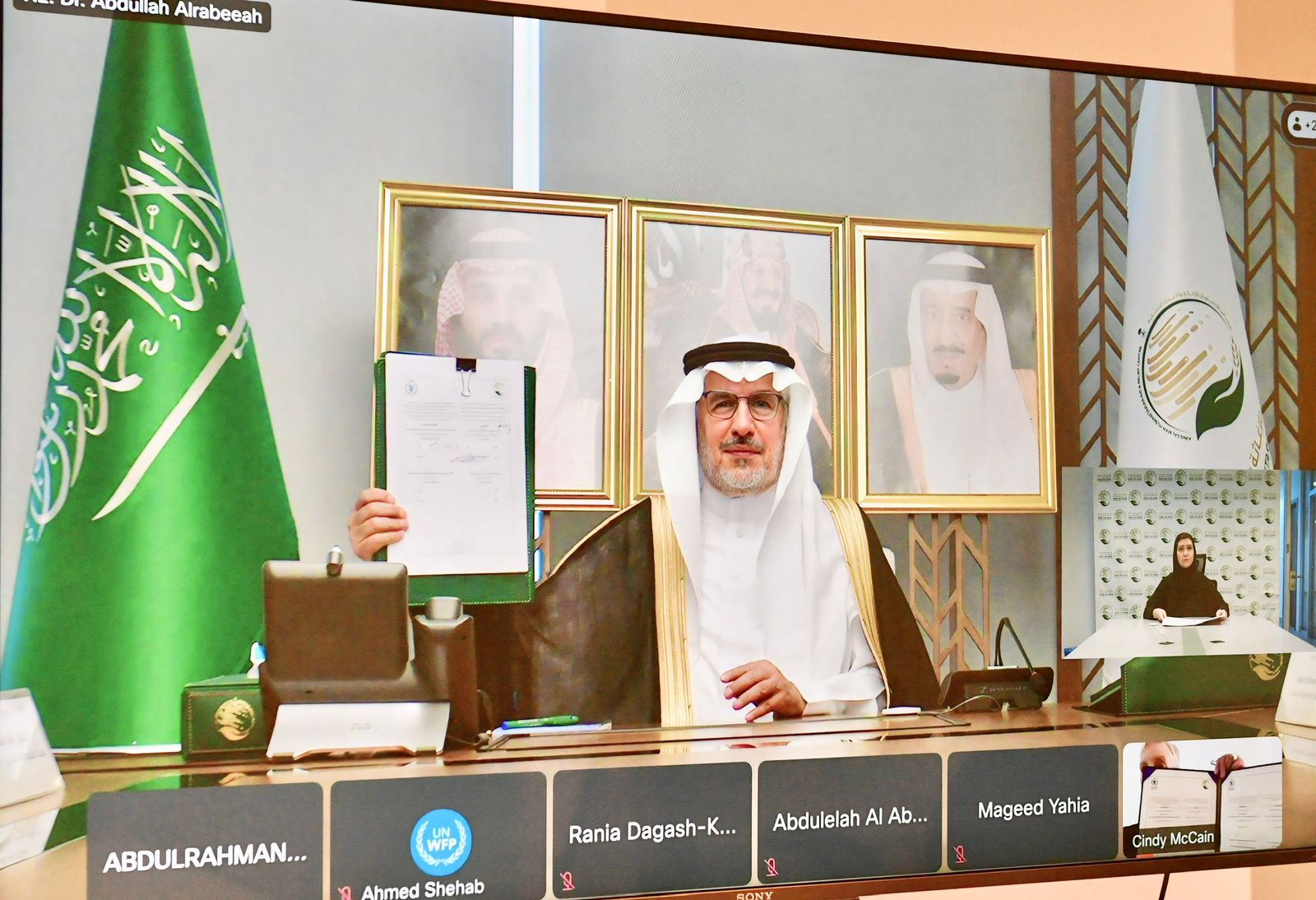 وقّع الاتفاقية معالي المستشار بالديوان الملكي المشرف العام على المركز الدكتور عبدالله بن عبدالعزيز الربيعة، والمدير التنفيذي لبرنامج الغذاء العالمى السيدة سيندى ماكين.