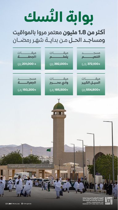 1.8 مليون معتمر زاروا #المواقيت ومساجد الحل خلال #شهر_رمضان
