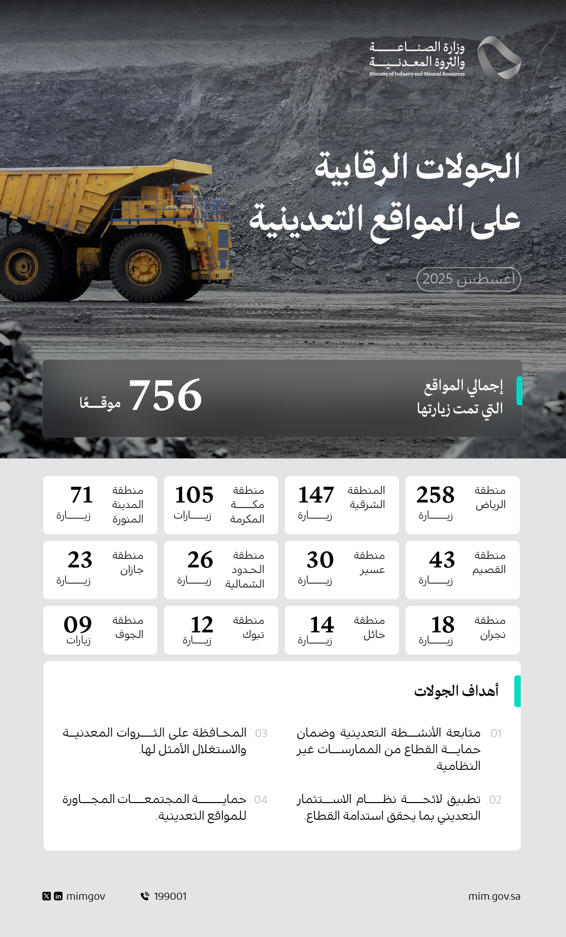 756 جولة رقابية على عدد من المواقع التعدينية بمختلف مناطق المملكة