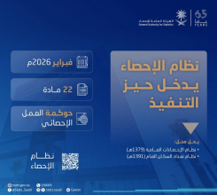 صراحة ـ واس أعلنت الهيئة العامة للإحصاء عن دخول نظام الإحصاء -الصادر بالمرسوم الملكي رقم (م/29) في تاريخ 10 /…