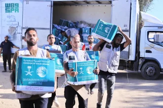 مركز الملك سلمان للإغاثة يوزع أكثر من (7,612) طنًا من المواد الغذائية والطبية والإيوائية في قطاع غزة