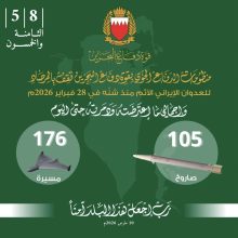 البحرين تعلن اعتراض وتدمير 105 صاروخ و 176 طائرة مسيرة