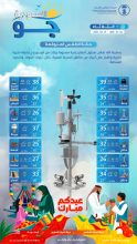 توقع المركز الوطني للأرصاد في تقريره عن حالة الطقس اليوم -بمشيئة الله تعالى-، هطول أمطار رعدية مصحوبة بزخات من البرد…