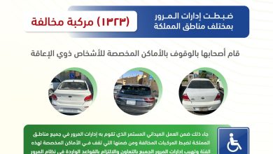 مخالفة (1323) مركبة قام أصحابها بالوقف في أمكان ذوي الإعاقة