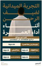 تجربة ميدانية لضيوف الرحمن أثناء أداء العمرة : متوسّط زمن رحلة العمرة 121 دقيقة