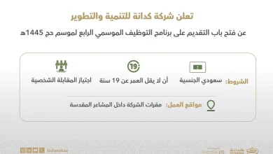 “كدانة” تعلن بدء التقديم على برنامج التوظيف الموسمي لموسم الحج