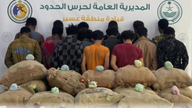 حرس الحدود بعسير يقبض على (15) مخالفاً لتهريبهم (300) كيلوجرام من نبات القات المخدر