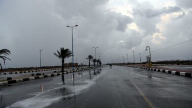 حالة الطقس: أمطار رعدية مصحوبة بزخات من البرد ونشاط في الرياح على عدة مناطق