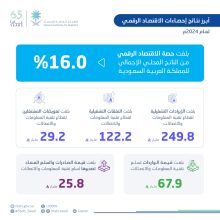 ارتفاع حصة الاقتصاد الرقمي من الناتج المحلي للمملكة إلى (16.0%)
