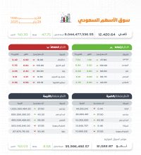 صراحة – واس : أغلق مؤشر الأسهم السعودية الرئيس اليوم منخفضًا 23.99 نقطة ليقفل عند مستوى 12415.49 نقطة, وبتداولات بلغت…