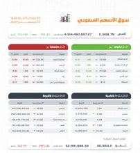صراحة – واس : أغلق مؤشر الأسهم السعودية الرئيس اليوم, منخفضًا 34.84 نقطة ليقفل عند مستوى 11913.95 نقطة, وبتداولات بلغت…