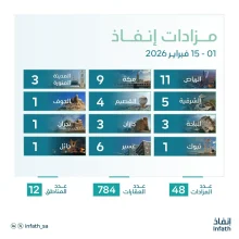 يشرف مركز الإسناد والتصفية (إنفاذ) على إقامة 48 مزادًا عقاريًّا، خلال الفترة من 1 إلى 15 فبراير 2026 م، لبيع…