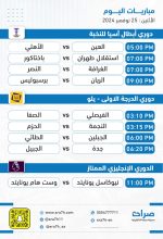صراحة – الرياض: تنطلق، اليوم الاثنين، منافسات الجولة الخامسة من مجموعة الغرب لبطولة دوري ابطال آسيا للنخبة، للموسم الحالي 2024-25.…