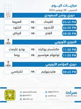 صراحة – الرياض: تنطلق اليوم منافسات الجولة الـ 12 من دوري روشن السعودي 2024-2025 بـ 3 مواجهات. وفيما يلي مواعبد…
