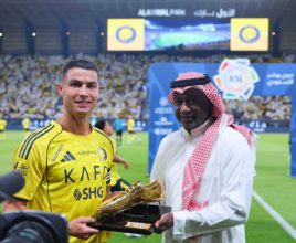 صراحة – الرياض تسلم البرتغالي كريستيانو رونالدو، نجم نادي النصر، جائزة الحذاء الذهبي كهداف لدوري روشن السعودي للموسم الماضي 2024-2025،…
