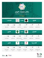 تُختتم اليوم منافسات الجولة الـ21 بإقامة ثلاث مواجهات قوية، حيث يلتقي الخلود مع الشباب عند الساعة 5:00 مساءً على ملعب نادي…