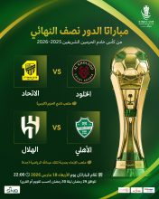 قررت إدارة المسابقات في الاتحاد السعودي لكرة القدم تأخير مباراتي الدور نصف النهائي من كأس خادم الحرمين الشريفين بين فريقي…