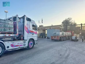 عبور 6 شاحنات إغاثية سعودية إلى #قطاع_غزة عبر معبر كرم أبو سالم #عاجل