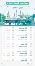 أعلن مشروع “حافلات المدينة” تحديث مواعيد تشغيل حافلات النقل العام للعام 1447هـ؛ وذلك بهدف تسهيل تنقل السكان والزوار والمعتمرين في…