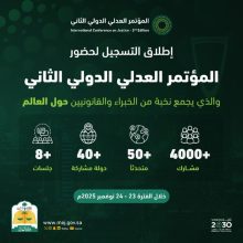 تحت رعاية ولي العهد.. وزارة العدل تطلق التسجيل لحضور المؤتمر العدلي الدولي الثاني بعنوان “الجودة القضائية”