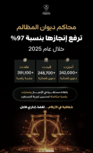 محاكم ديوان المظالم ترفع إنجازها بنسبة 97٪