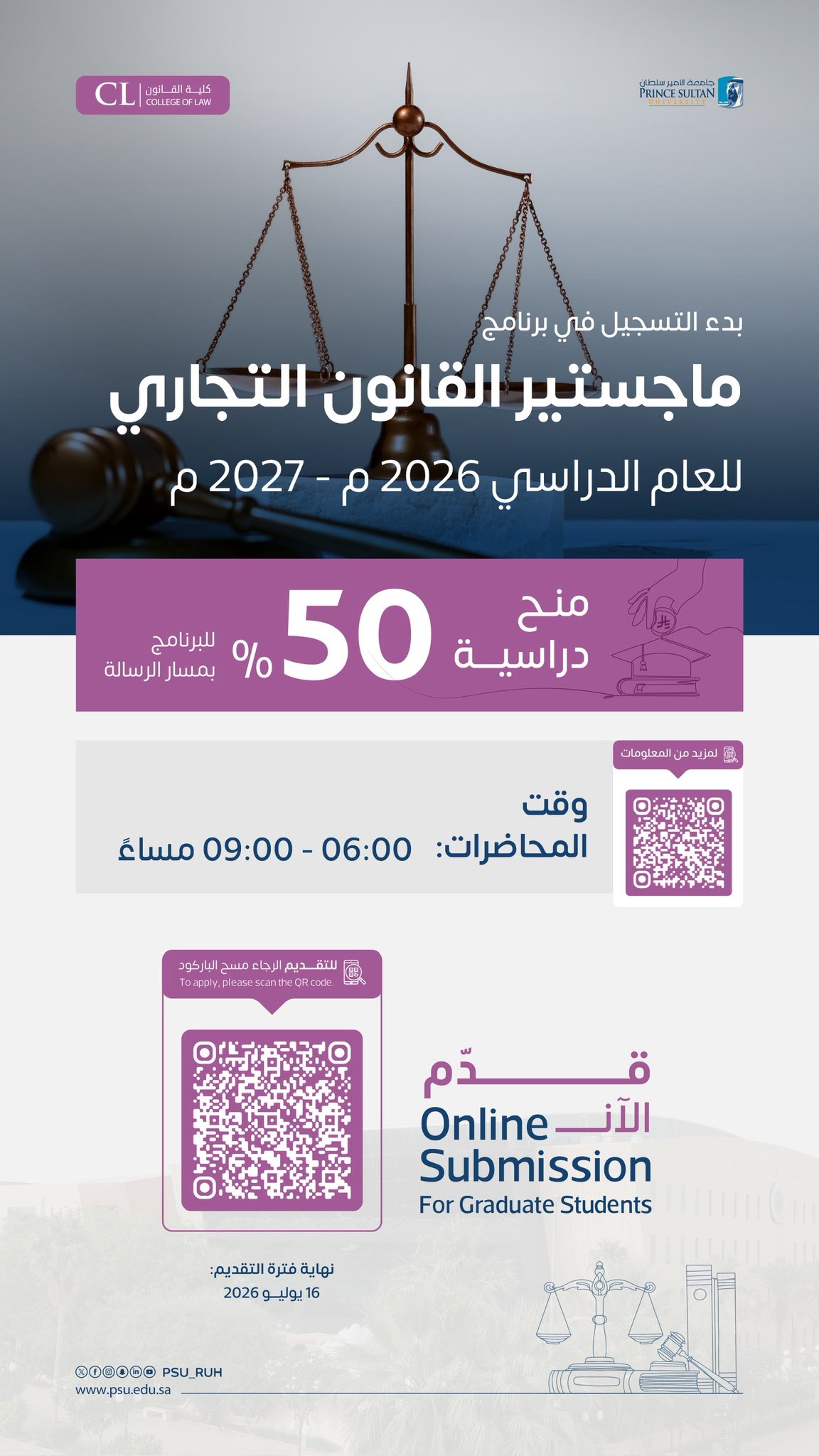 #جامعة_الأمير_سلطان تفتح باب القبول في برنامج ماجستير #القانون_التجاري